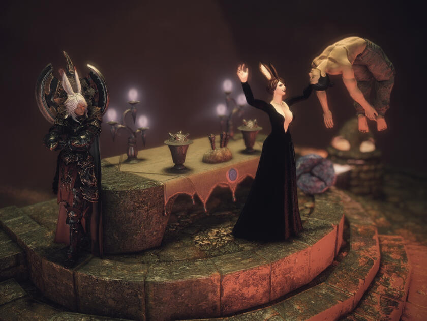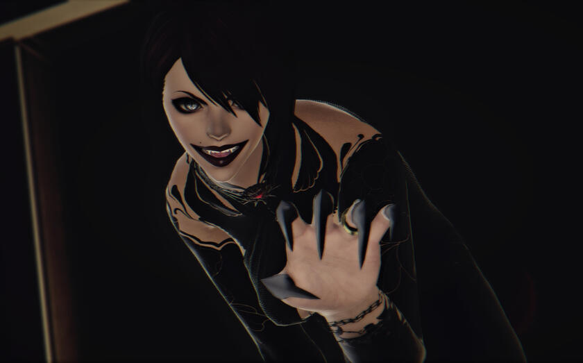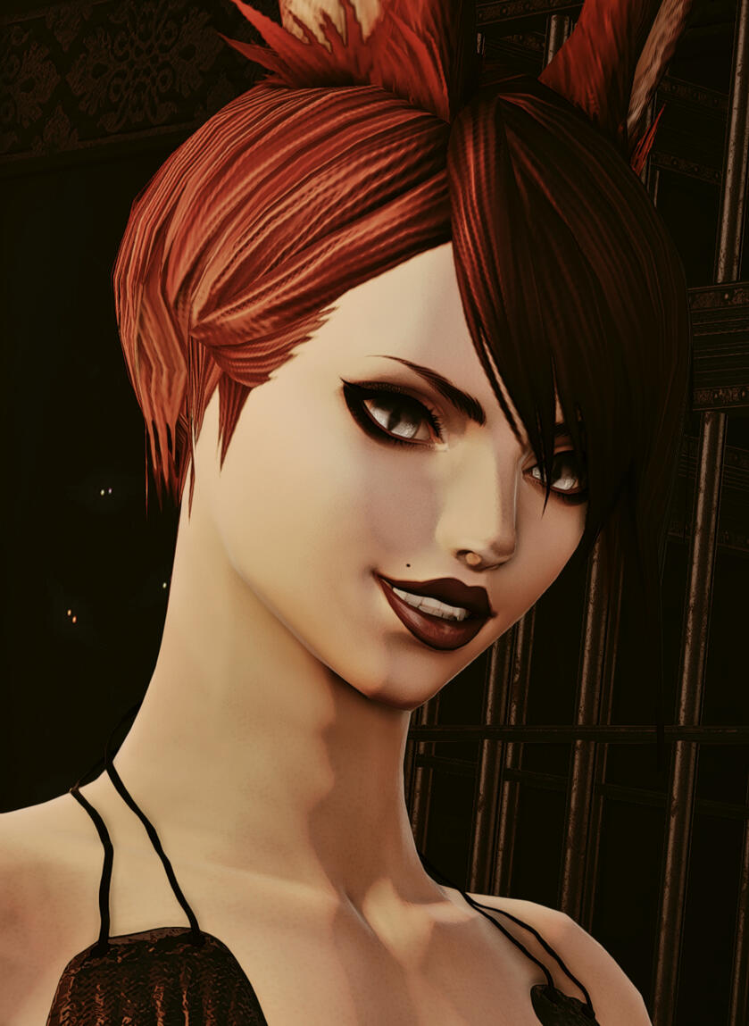 She eats people.Quite literally.While not an exclusive cannibal, Anna discovered early in her Eorzean years that consuming the aether of other living beings became much easier when she drained the blood from their veins. After "raising" her "daughter" Wisteria, a flesh-eating yokai, she didn't let the stock of accumulated meat go to waste.She'd developed a taste for the flesh of sentient beings long before then anyway.The only problem with indulging in her diet is the fact that she's become a bit... less restrained when hungry. Or when she's seeking greater stores of aether to pursue another bit of spellcasting lore.If she's flirting with you... the night is not going to go the way you think.